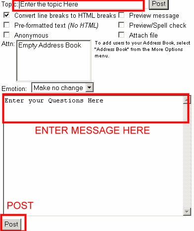 Simply enter a proper topic title and your questions. When finish, just POST to complete posting the message.