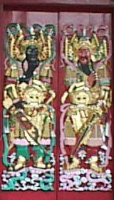 Traditionally (in the past) the picture of the two door gods are pasted on doors:-
