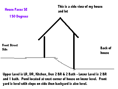 I have attached a sketch (sorry about the quality) is my lot and house showing the slope of the lot. Like I said the front and back are level with slope on both sides of my house.
